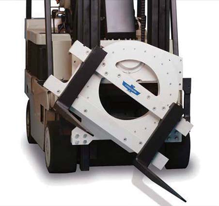 旋轉(zhuǎn)叉可對貨物進行夾持和叉持兩種搬運方式??捎糜趯χT如箱狀貨物、板條箱、紙箱以及托盤化貨物和廢料包等貨物進行運輸、驗收和訂單揀選等操作,還可進行無托盤搬運操作。旋轉(zhuǎn)叉夾可夾持貨物進行360度連續(xù)旋轉(zhuǎn)。